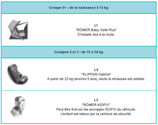 Peugeot 2008: Sièges enfants ISOFIXPEUGEOT vous propose une gamme complète de sièges enfants référencés se fixant à l'aide d'une ceinture de sécurité trois points .